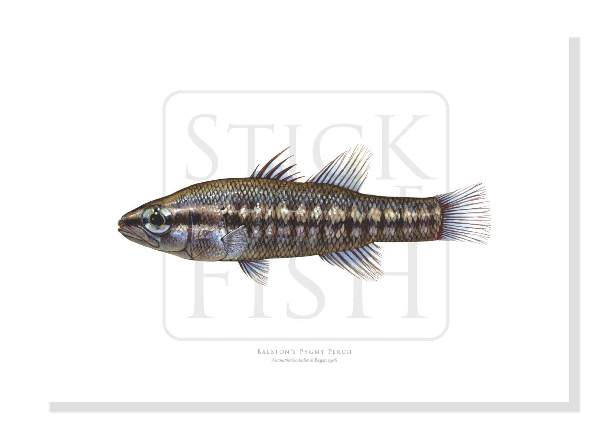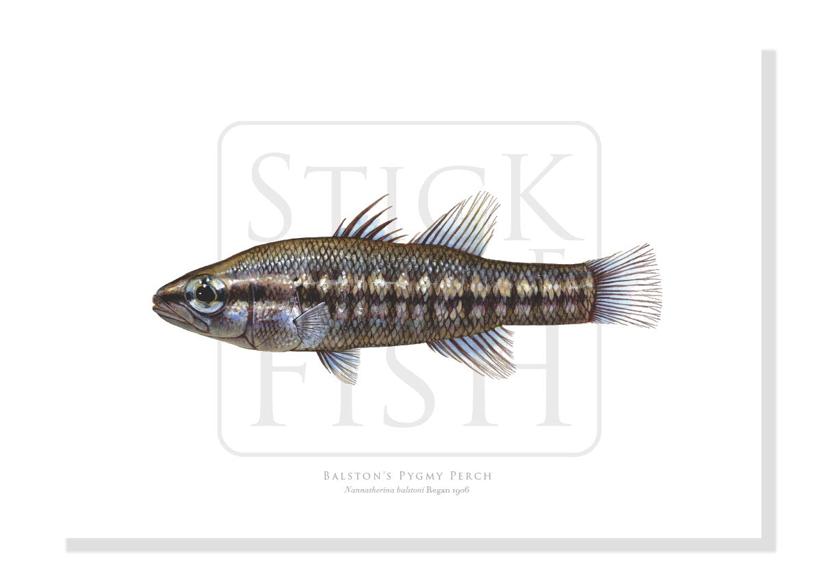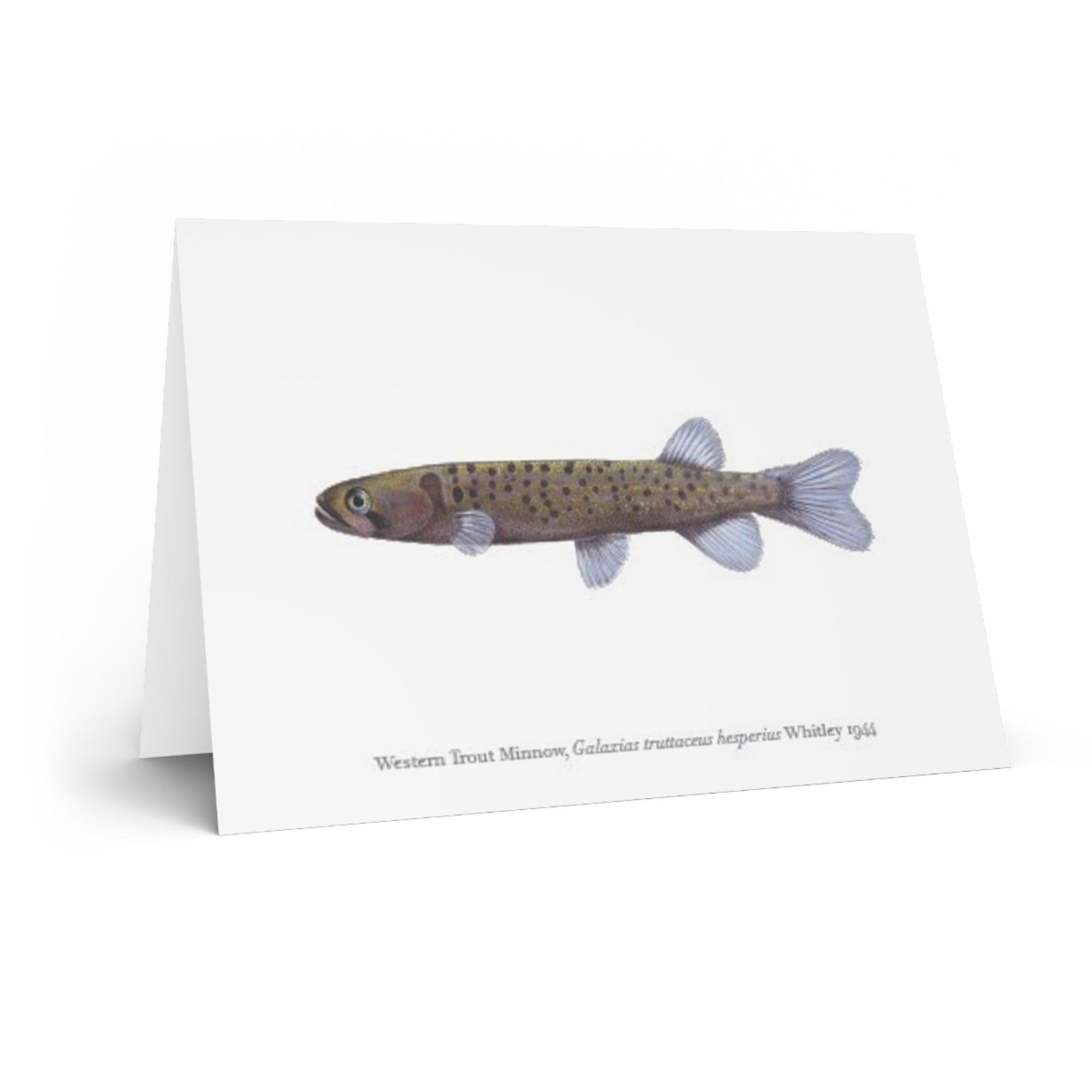 Prints, greeting cards, mugs and other items with illustrations featuring hardyhead, trout, minnow and other freshwater fish species by scientist and natural history artist Dr Lindsay Jane Marshall.
