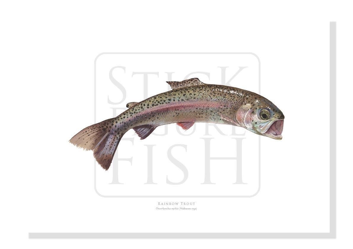 Rainbow Trout, Oncorhynchus mykiss (Walbaum 1792) - Fine Art Print-Stick Figure Fish Illustration