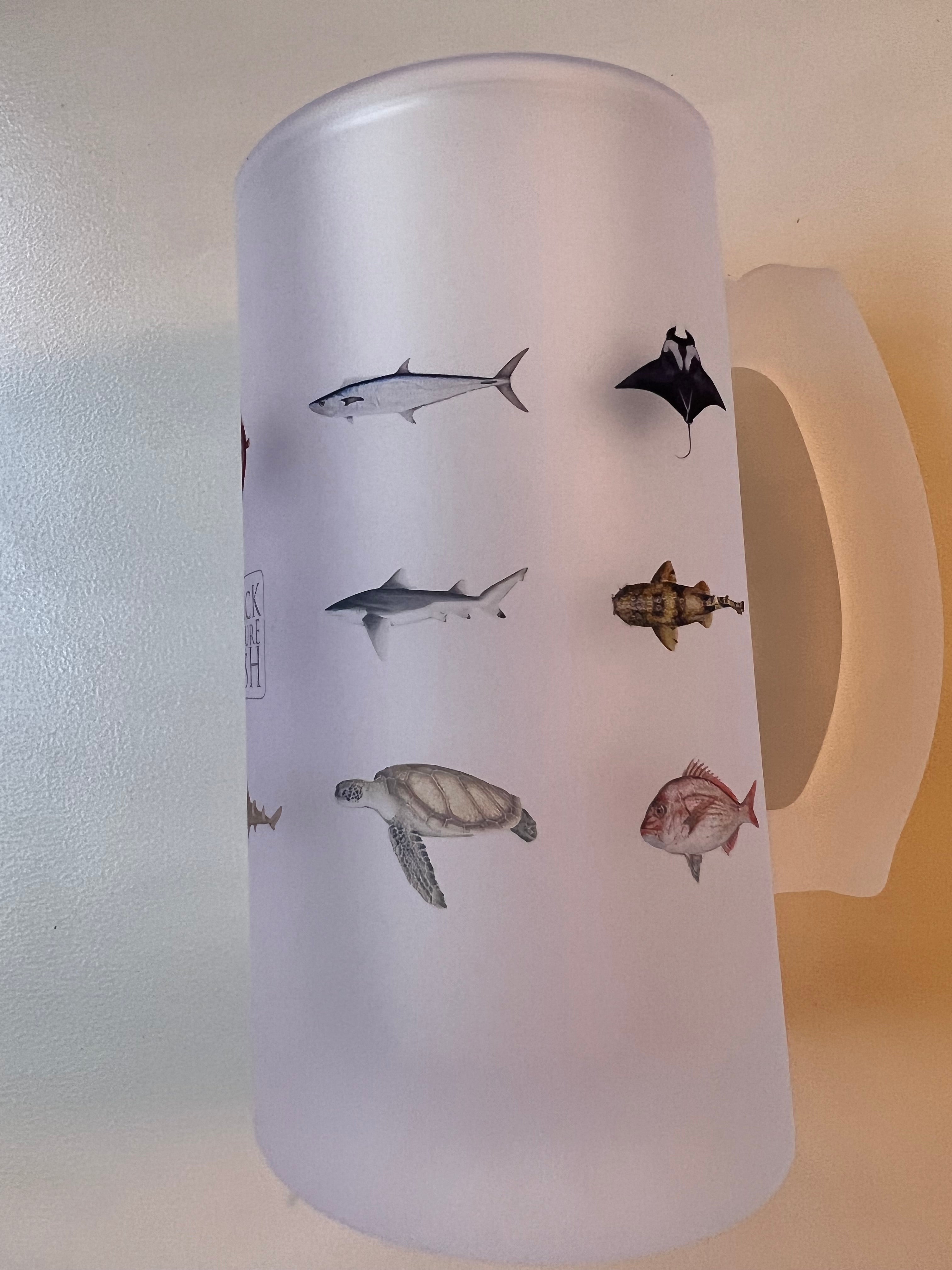 These 247ml (16oz) frosted glass beer stein/mugs are perfect straight out of the freezer for that frosty amber drop, or cool sparkling water, after hanging out at the beach, diving or fishing.