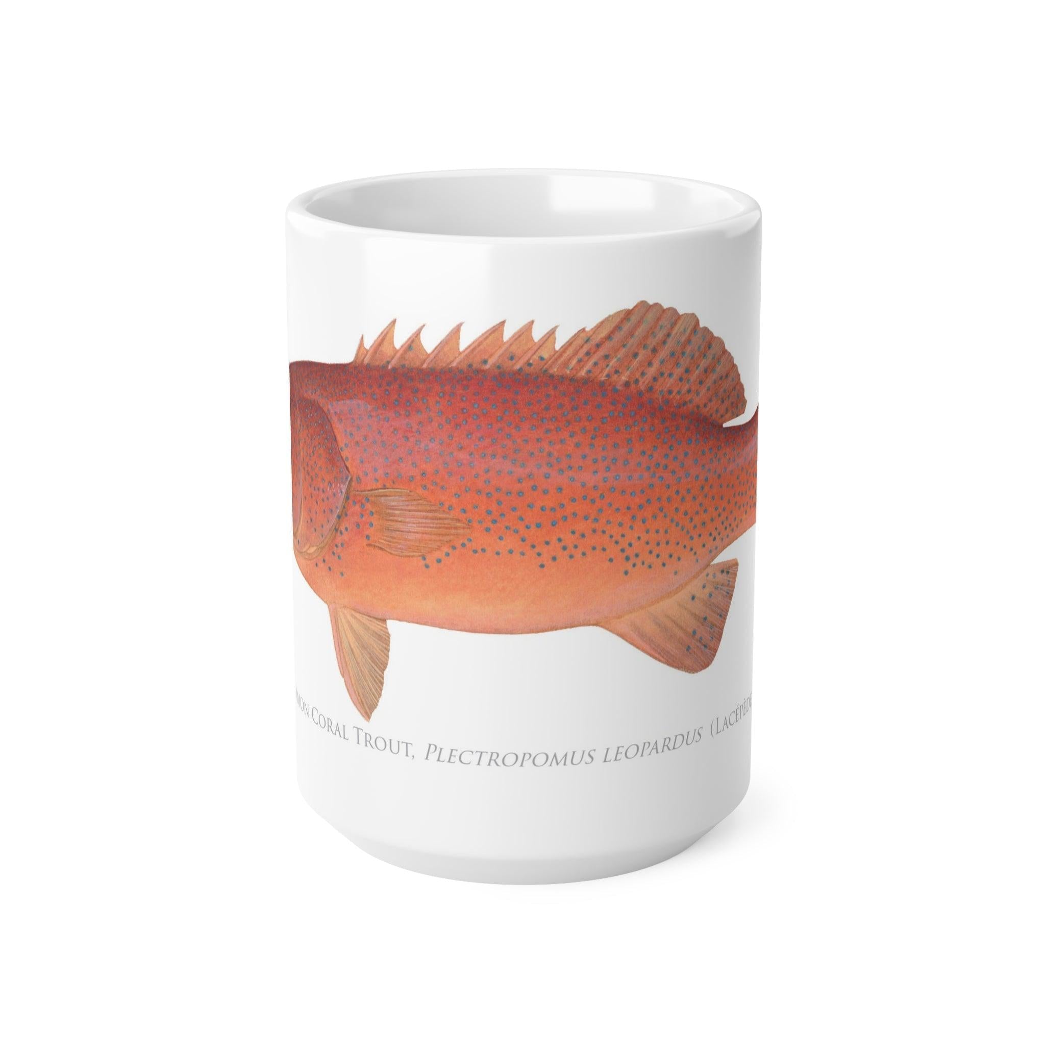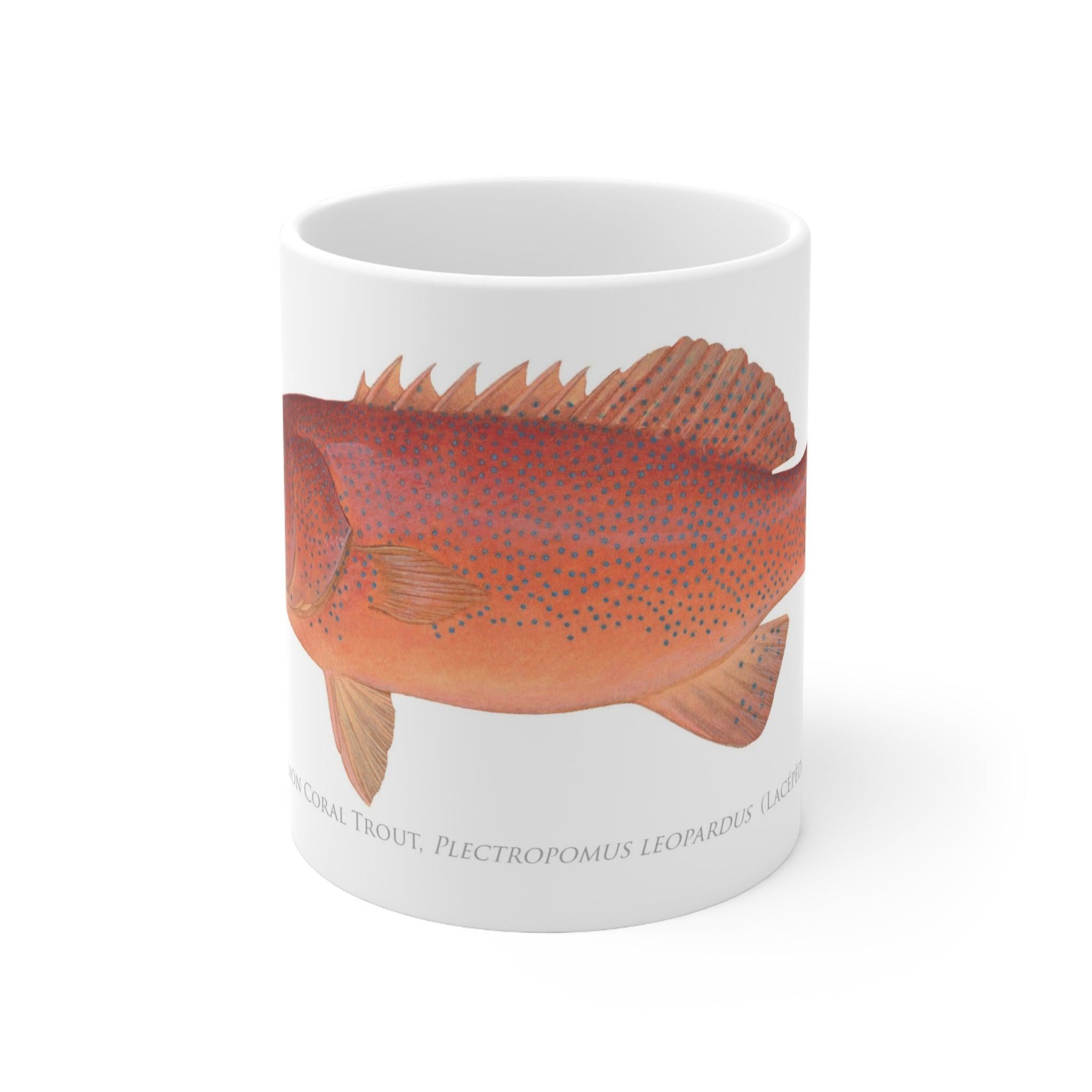 Add a splash of tropical paradise to your morning coffee routine with this scientifically accurate coral trout mug. Hand-illustrated by artist Lindsay Marshall, this ceramic mug brings the vibrant Plectropomus leopardus fish to life in stunning detail. Found in coral reefs off the coast of Australia, the common coral trout is prized by divers and anglers alike for its beauty and as an exciting game fish. Now you can enjoy an up-close encounter with this colorful reef dweller every time you take a sip of your favorite brew. At home in coastal-themed kitchens and beach houses, this mug also makes a unique gift for the nature lover or scuba enthusiast in your life. Start your day by diving into a rich, full-bodied roast or an aromatic herbal tea, all while being transported to the serene azure waters of the South Pacific. Who knew your daily dose of caffeine could be this picturesque? With this coral trout on the case, each morning cup will be an undersea adventure.