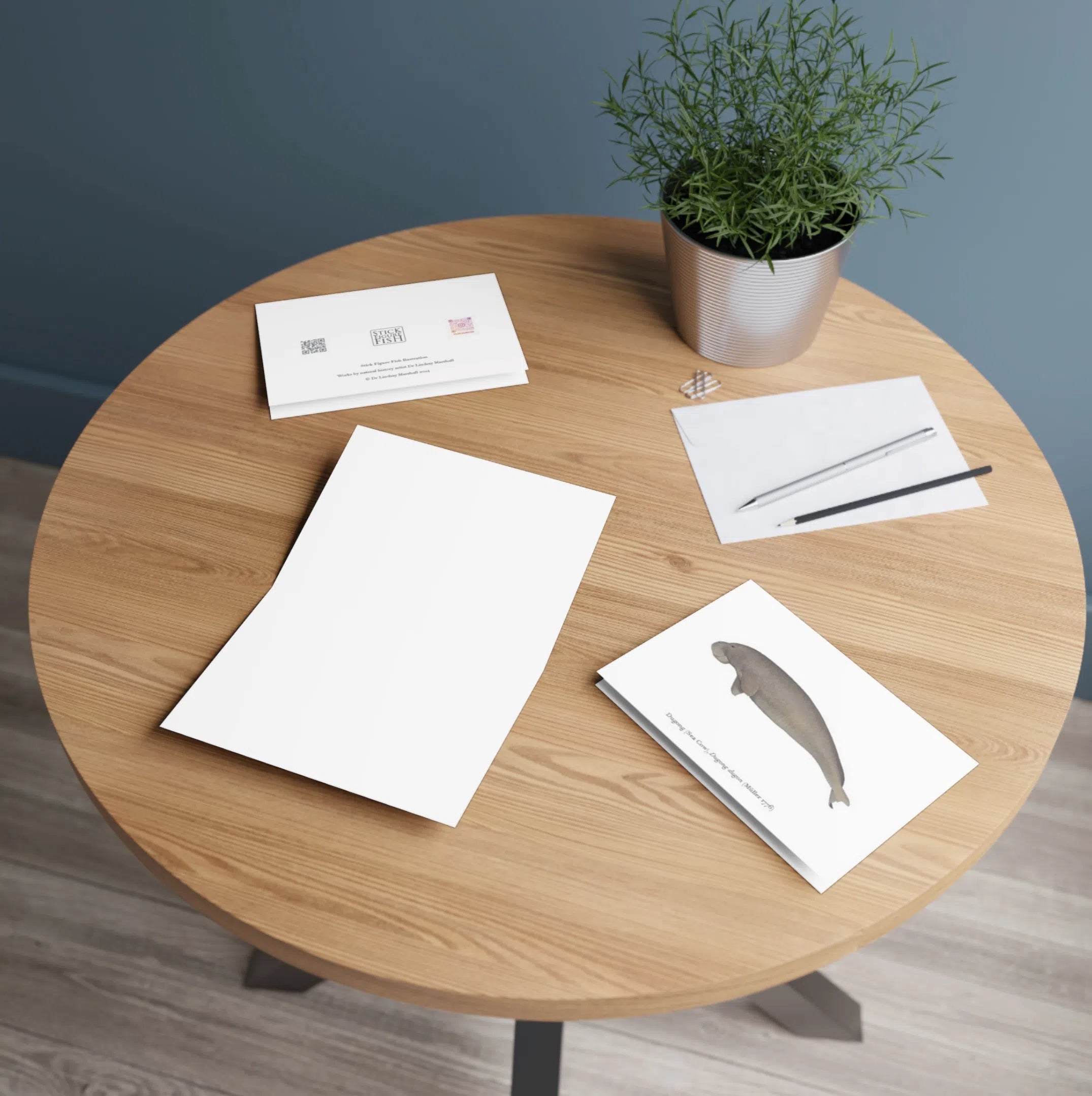 A lovely eco-conscious card featuring my natural history illustration of a Dugong (Sea Cow) (Dugong dugon).