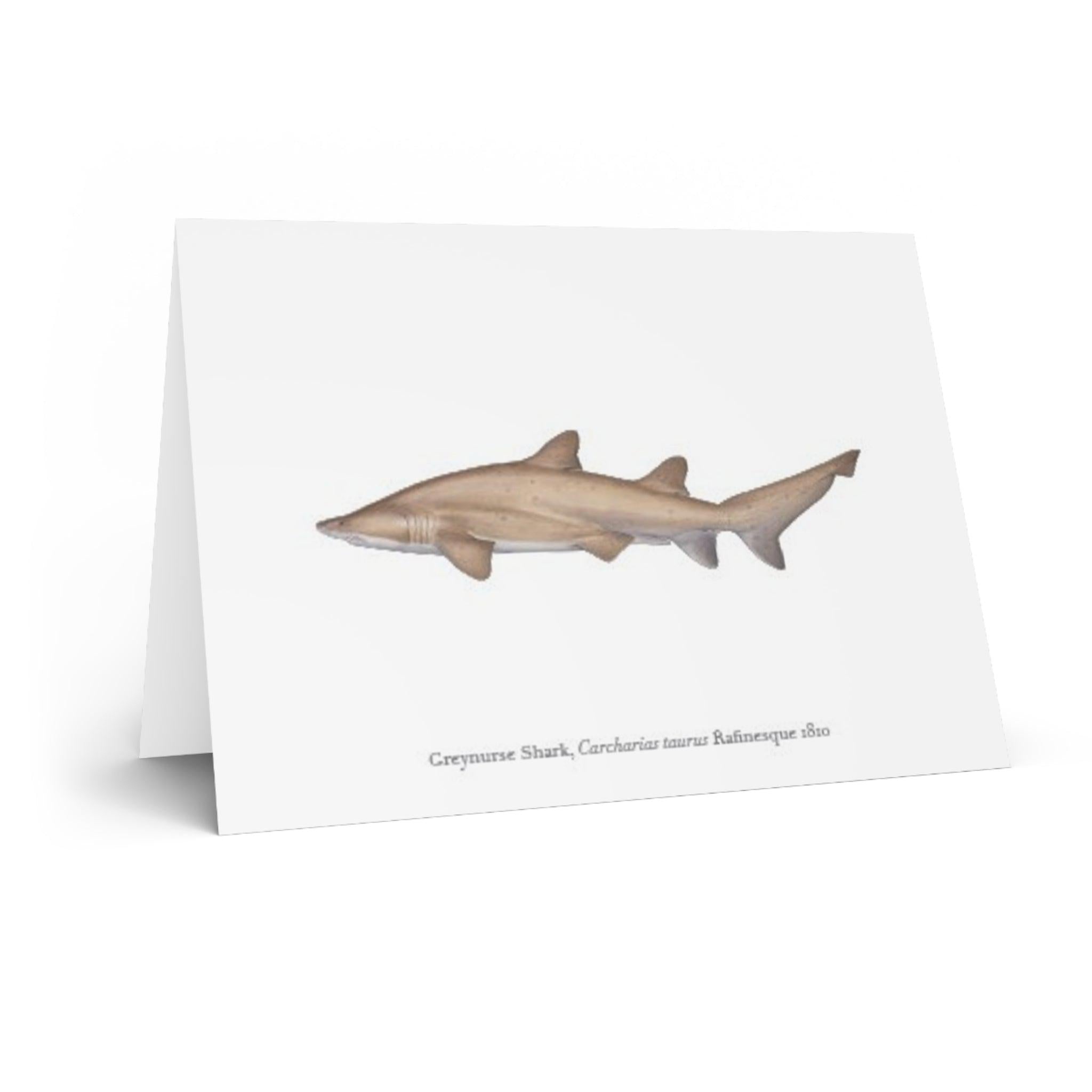 A lovely eco-conscious card featuring my natural history illustration of a Greynurse Shark (Carcharias taurus).