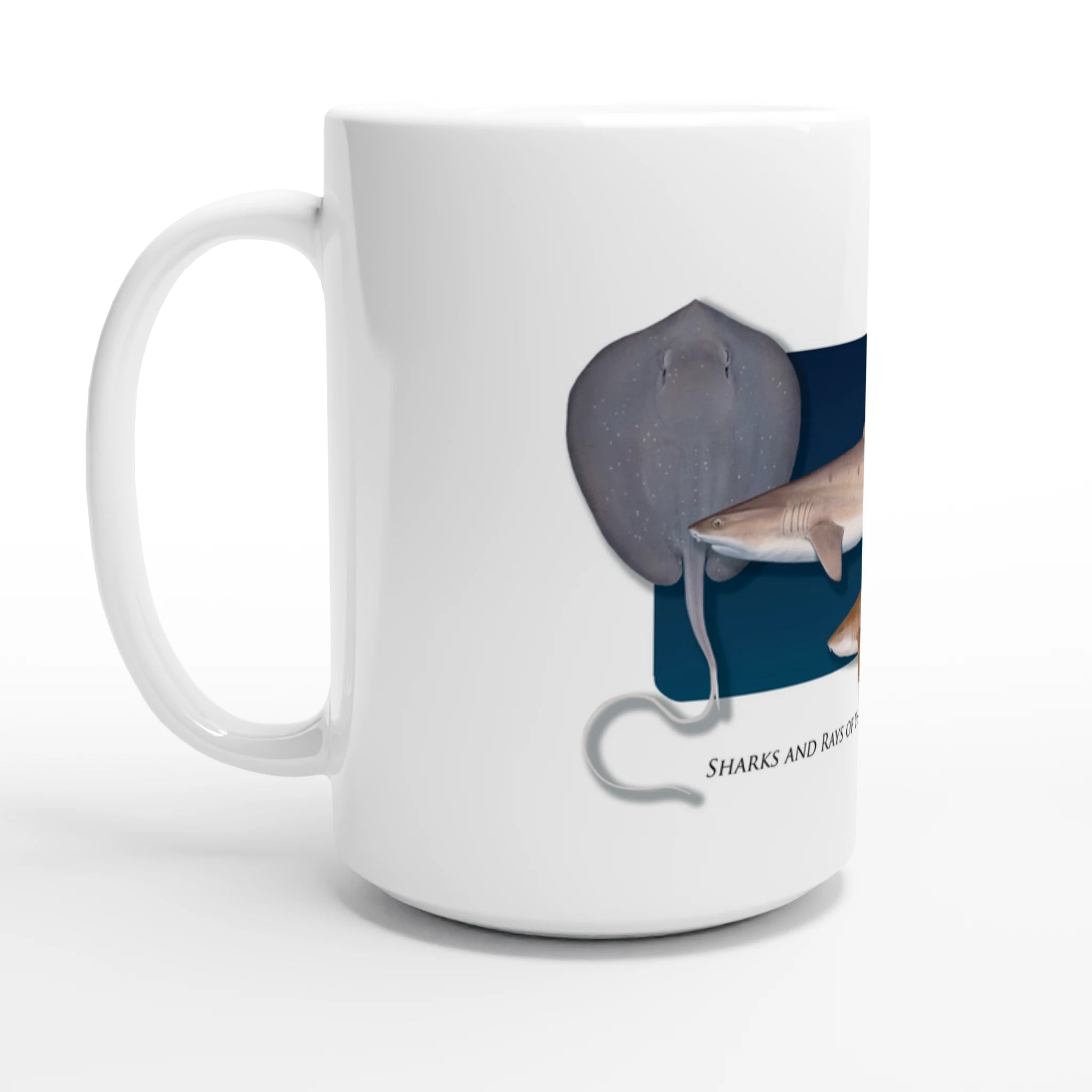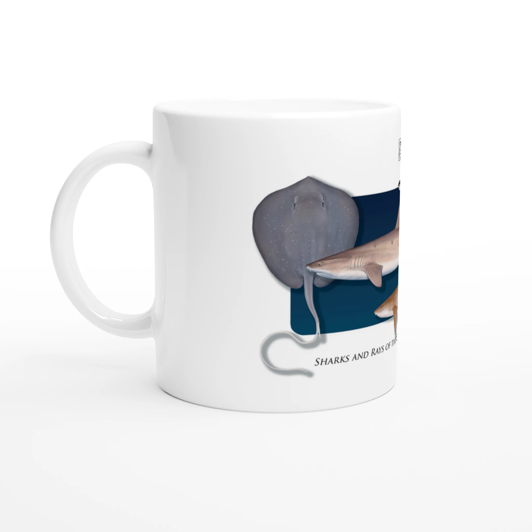 Bring the beauty of the ocean into your everyday routine with this stunning 15oz mug, featuring a meticulously illustrated design from Dr. Lindsay Marshall’s 2025 Sharks and Rays of the Coral Reef calendar. Choose from a variety of breathtaking designs showcasing some of the ocean’s most fascinating coral reef associated sharks, rays, and other elasmobranchs. Whether it's the vibrant Great Hammerhead, the graceful Whitespotted Eagle Ray, or the elusive Ornate Eagle Ray, this mug brings marine life to your hands with extraordinary detail.
