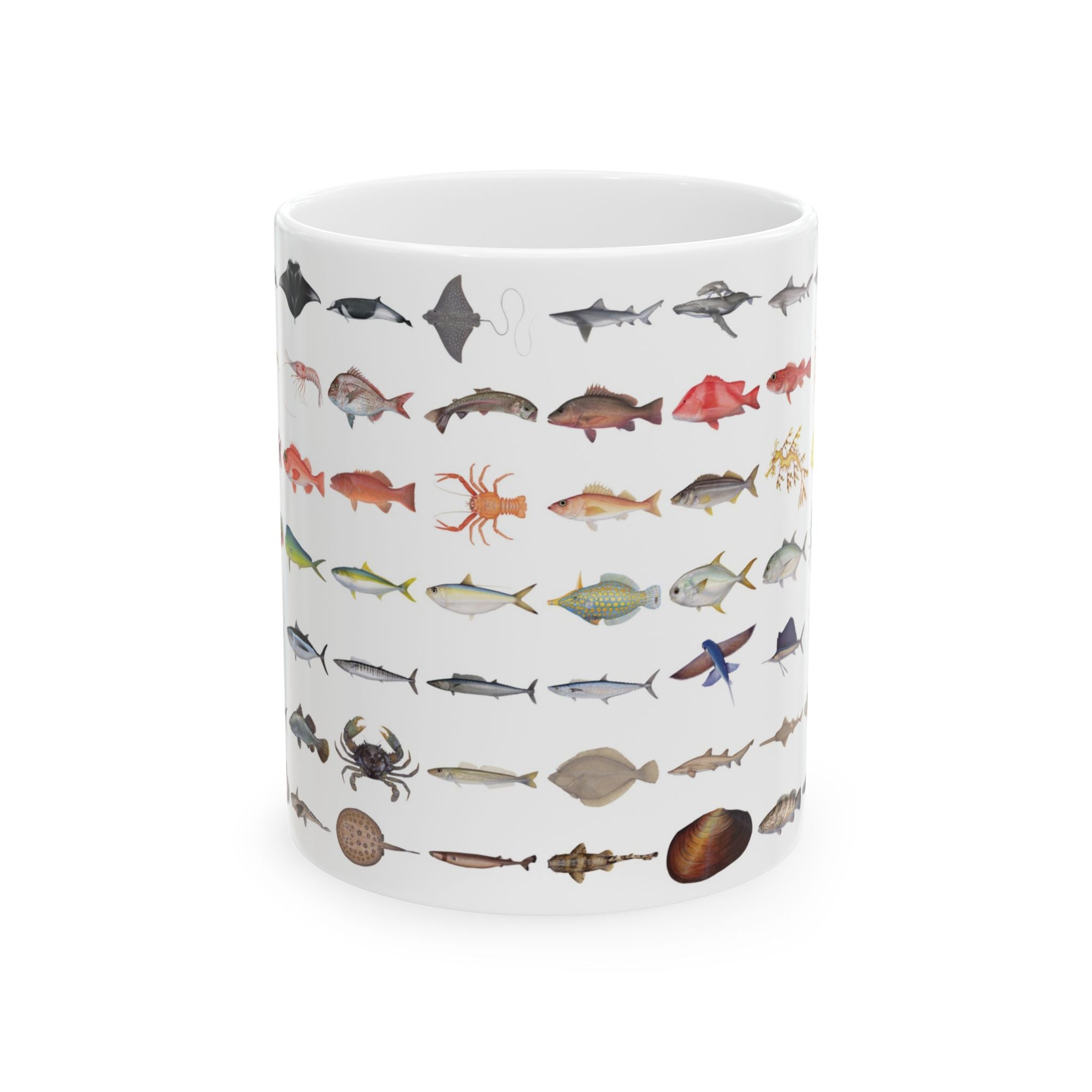 Can’t pick a favourite species? This mug features all the fish, sharks, rays, crustaceans, and molluscs I’ve ever painted — arranged in a flowing rainbow of natural history. It’s a colour-coded celebration of biodiversity, showcasing the extraordinary variety of marine life I’ve illustrated over the years.