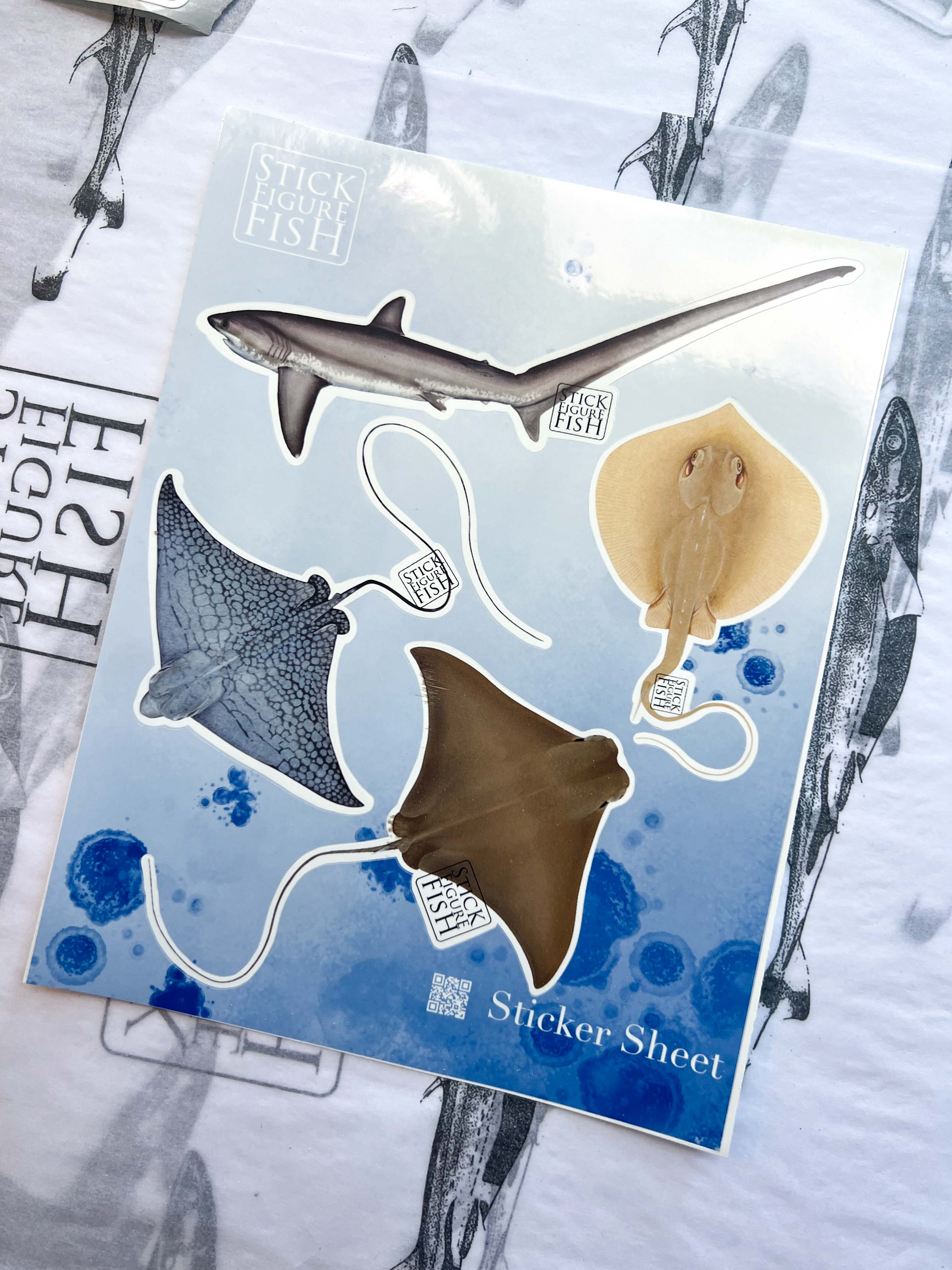Sharks and Rays of the Open Ocean Sticker Sheet