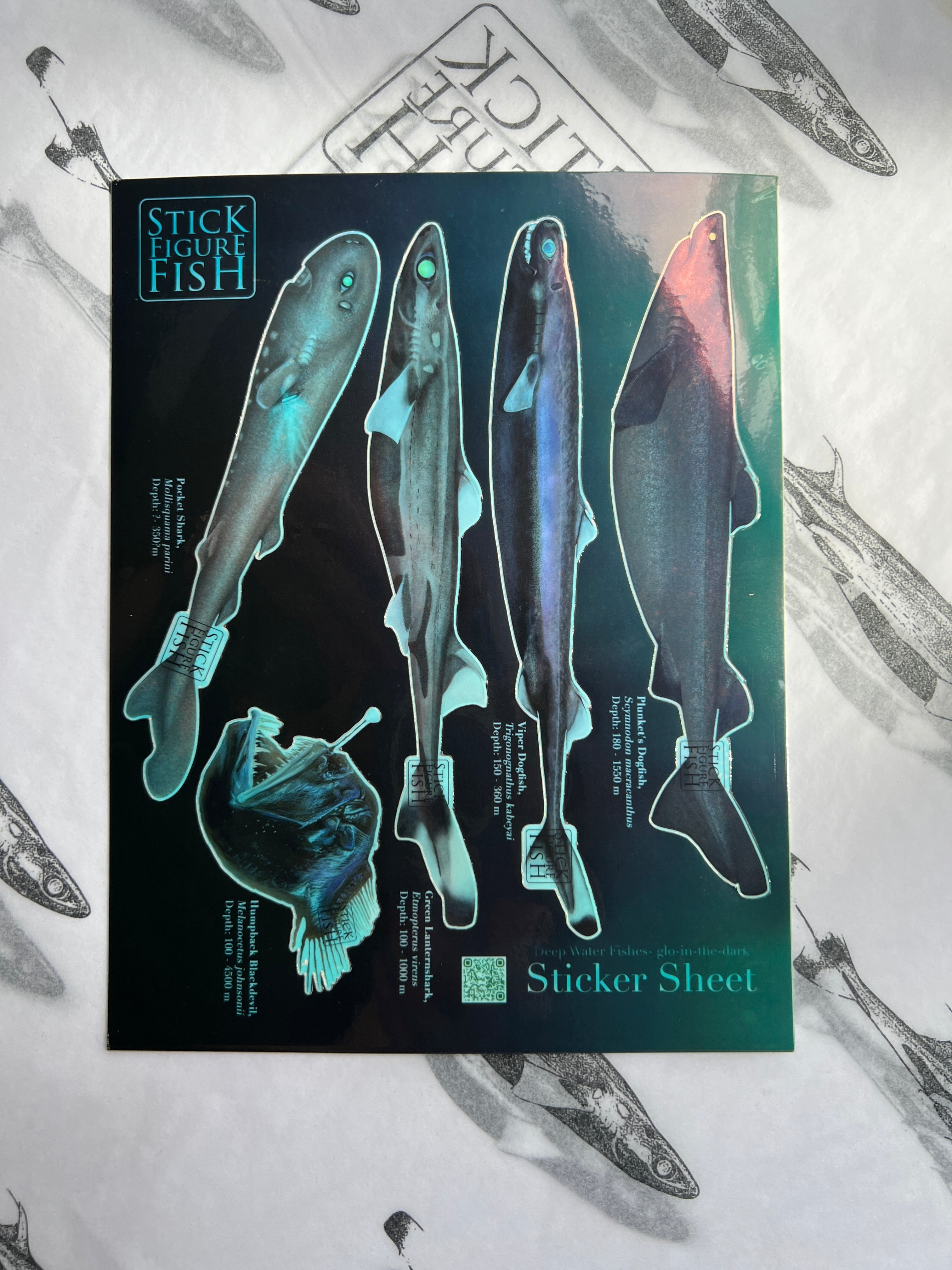 Holographic Glow-in-the-Dark Vinyl Sticker Sheet: Deep-Sea Fishes (Handcrafted Limited Edition)