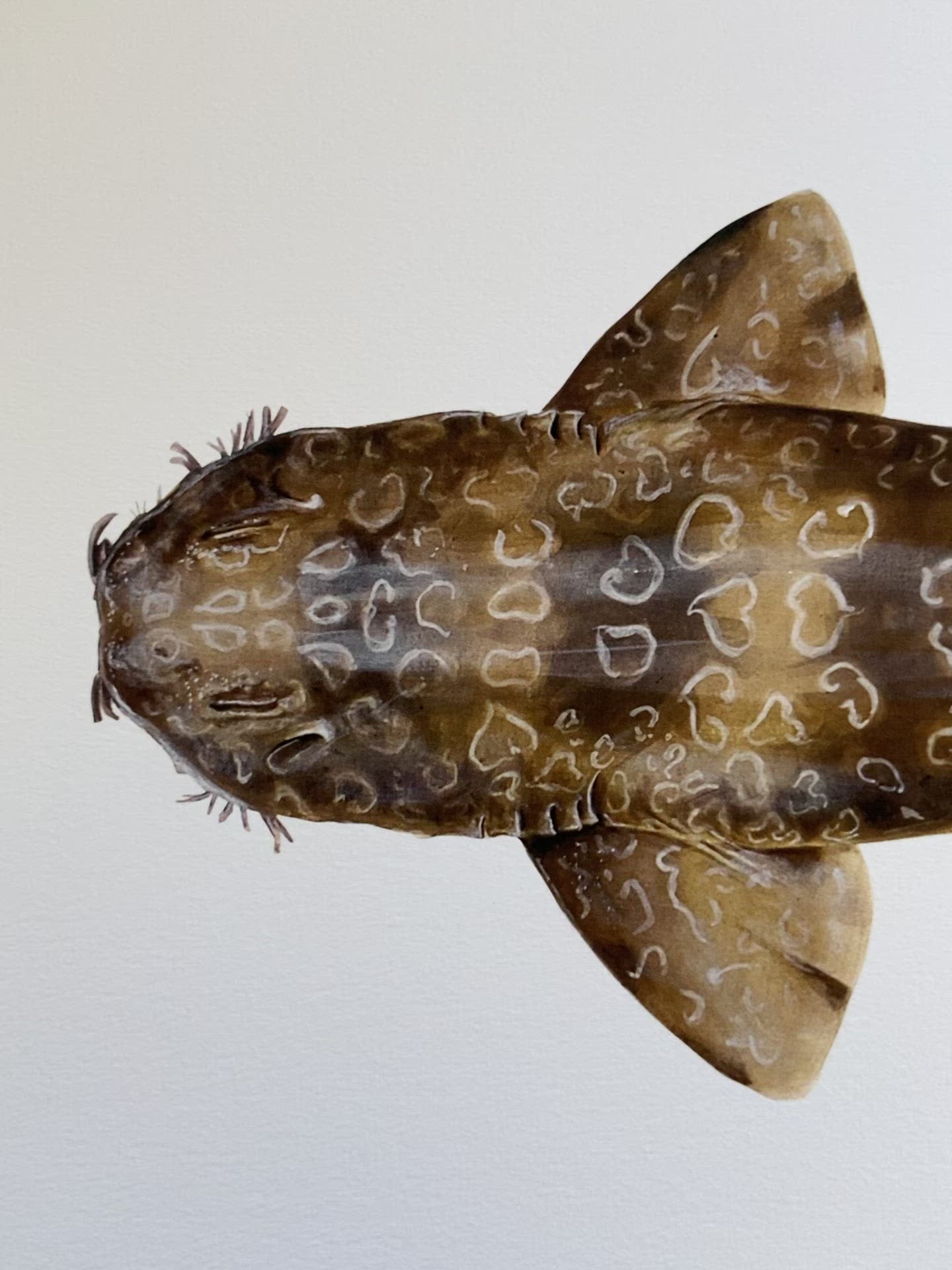 This stunning fine art print brings the spotted wobbegong, Orectolobus maculatus, a fascinating shark native to Australian waters, to vivid life. With scientifically accurate details, the illustration captures this ambush predator's distinctive spotted pattern and flat body. Whether you're a marine life enthusiast or simply appreciate nature's artistic flair, this print is sure to make a splash. It will stand alone as an eye-catching work of art or group with other prints for a custom gallery wall. Made from archival paper and fade-resistant inks, it's built to withstand the test of time while bringing the drama and beauty of the sea into your home. After all, with camouflage this striking, how could the wobbegong not end up the centre of attention? Let this print turn your space into an oceanic oasis.