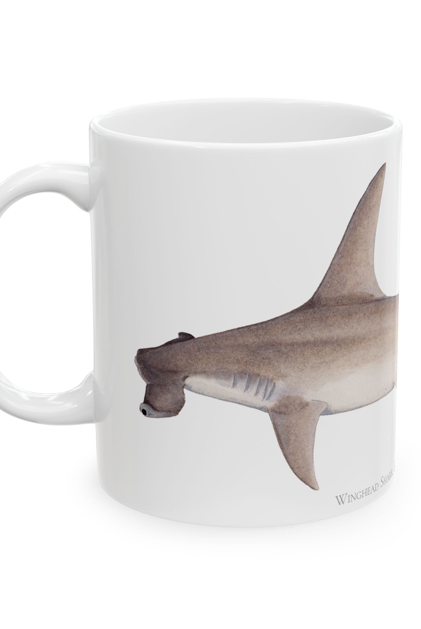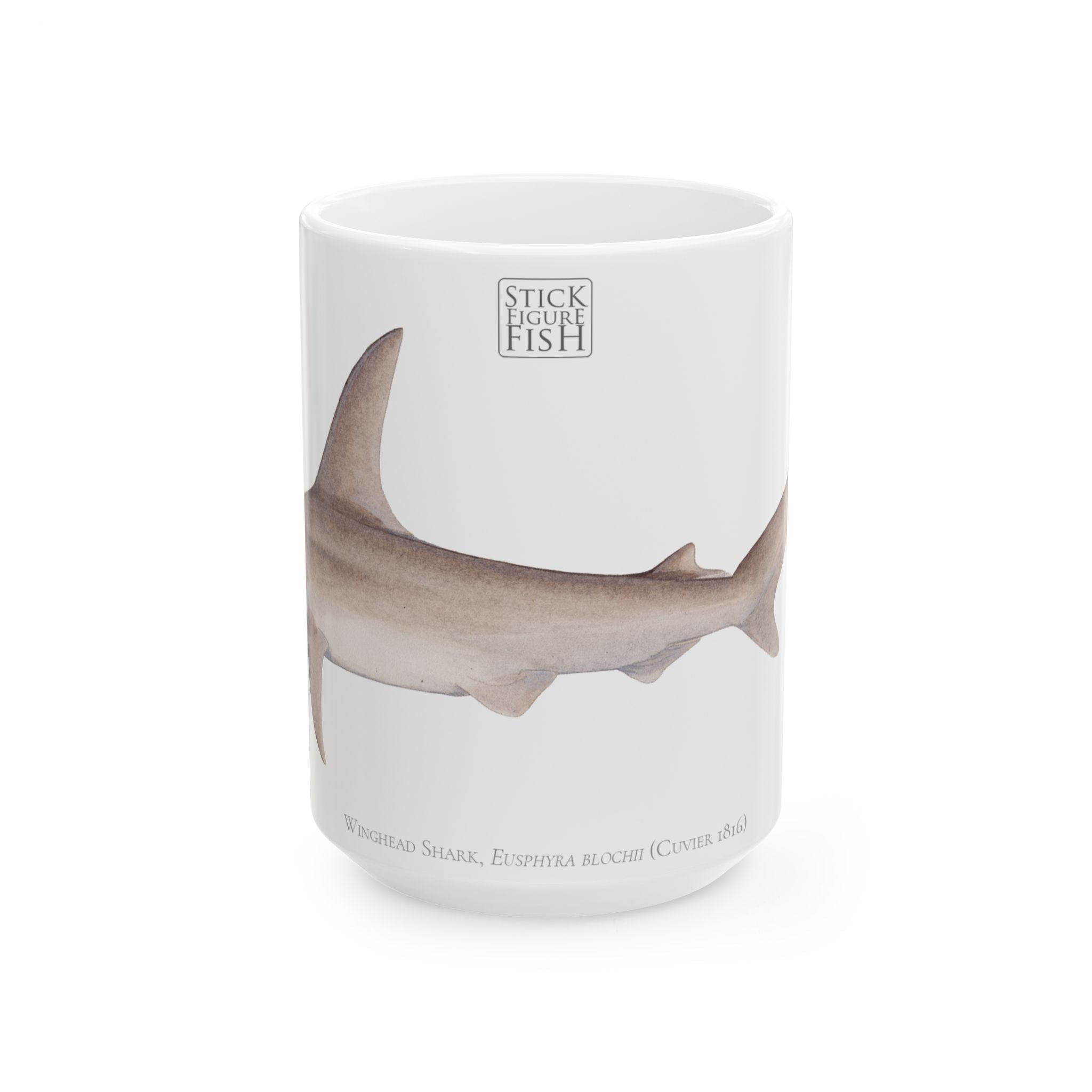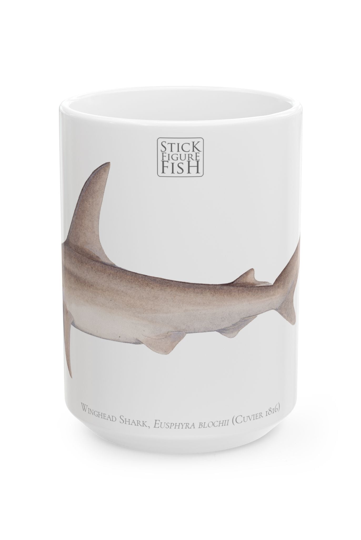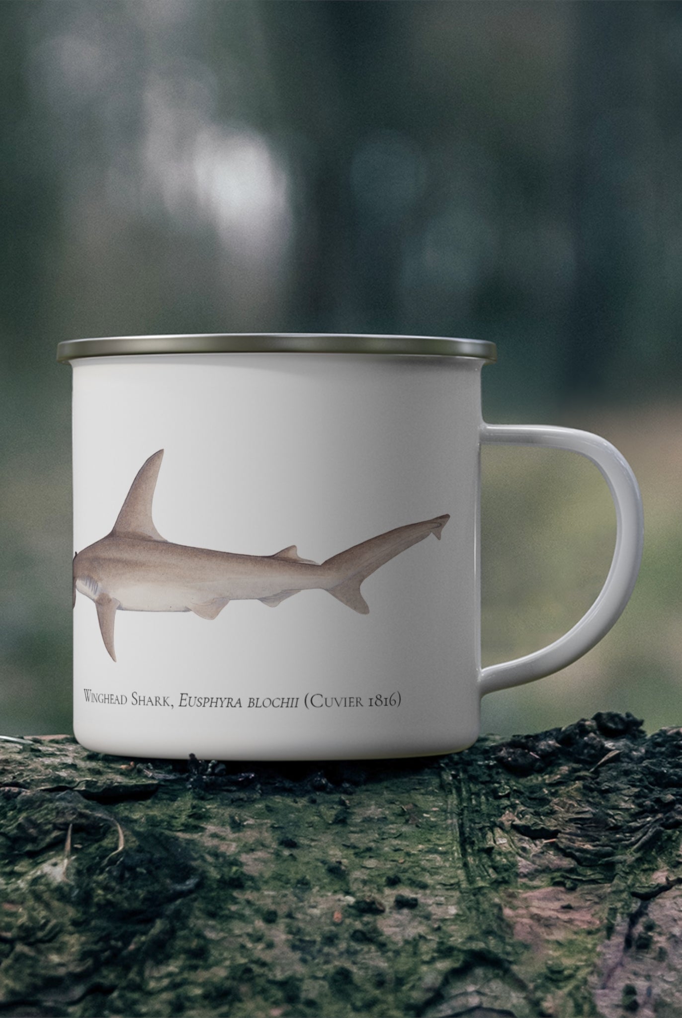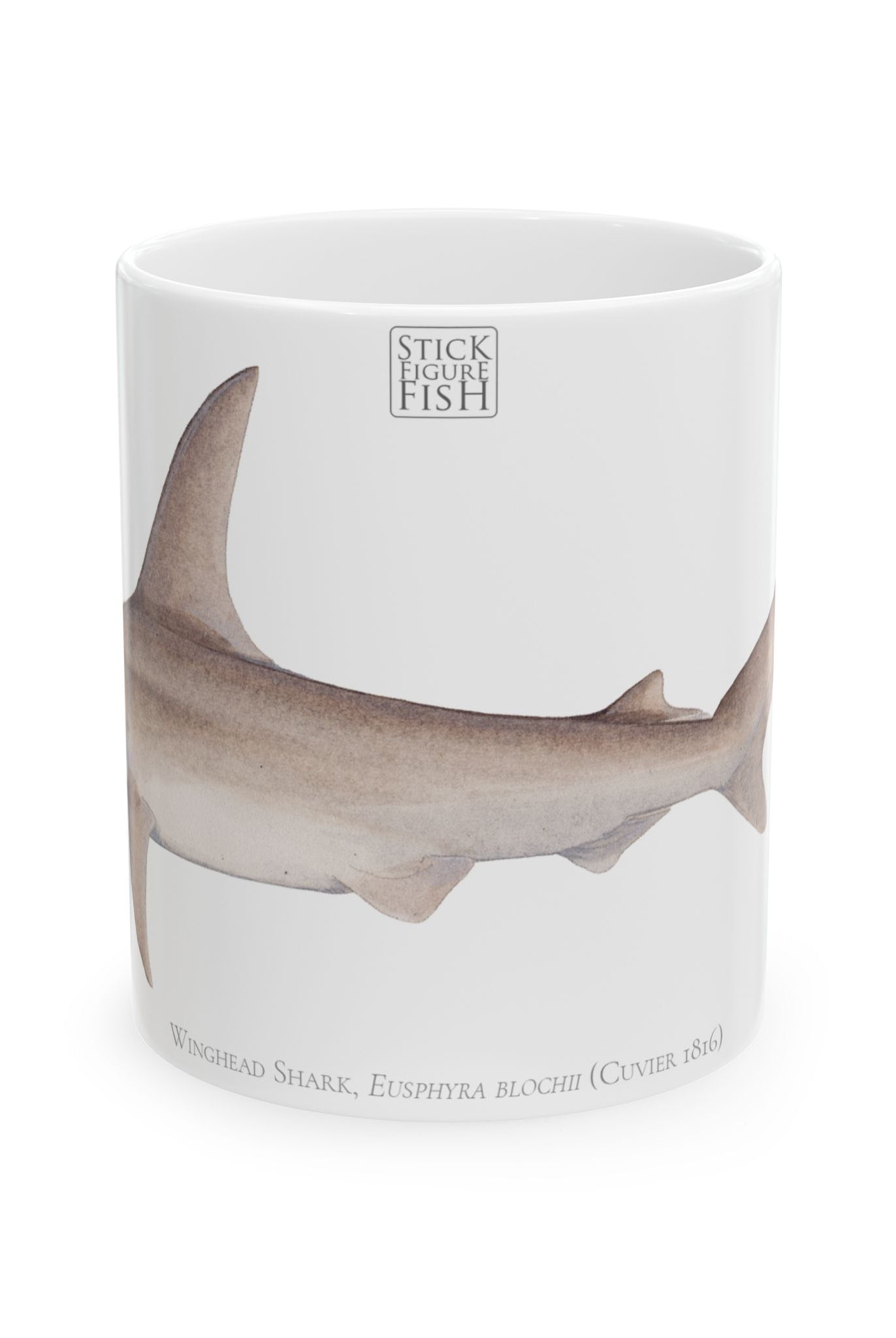 The Winghead Shark, Eusphyra blochii, is the sole member of its genus and is easily recognised by its exceptionally wide, wing-like cephalofoil, which may span nearly half the total body length. This unique morphology enhances electrosensory detection, manoeuvrability, and visual coverage in the shallow, often turbid coastal habitats it occupies. The species is slender-bodied with long, narrow pectoral fins, a moderately tall first dorsal fin, and low second dorsal and anal fins of similar height. Colouration is greyish-brown dorsally with a pale ventral surface, and juveniles may show faint dusky fin shading.